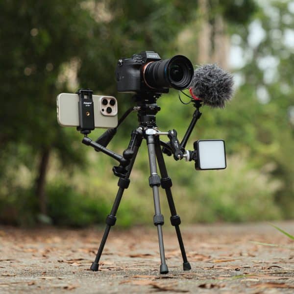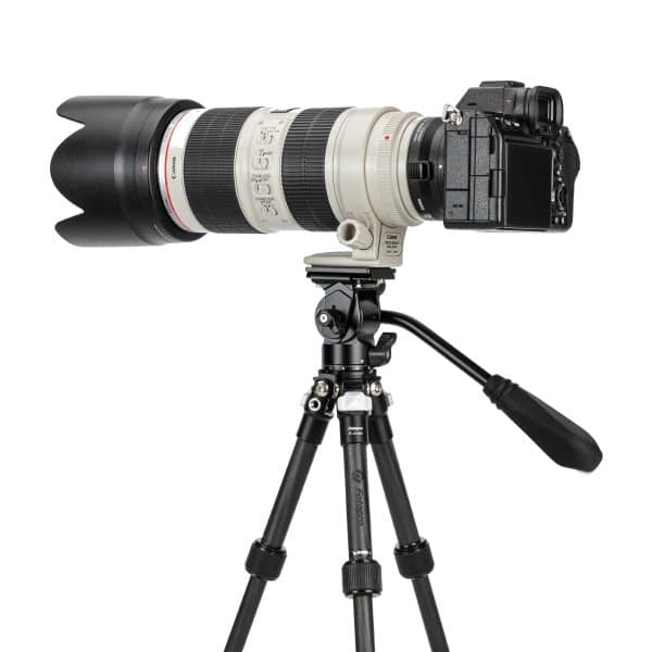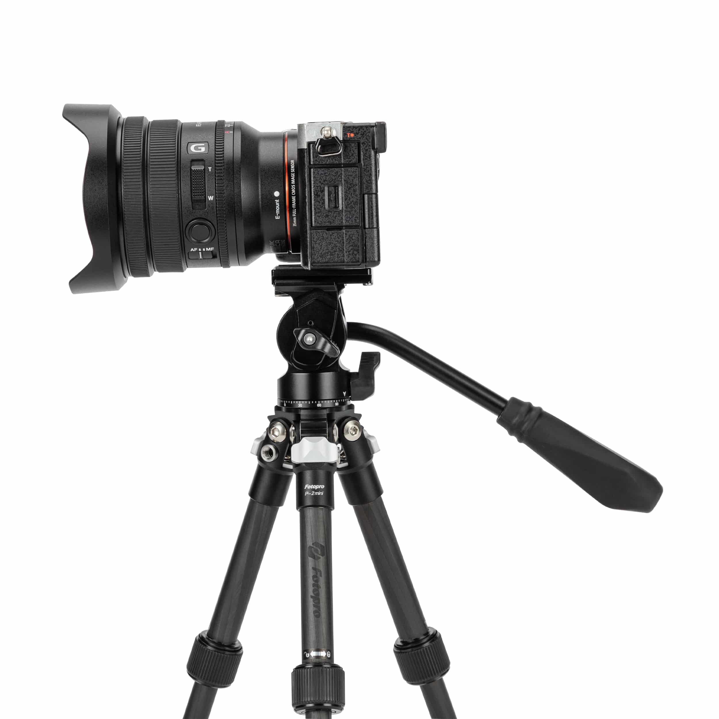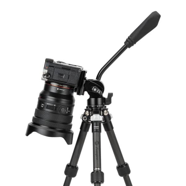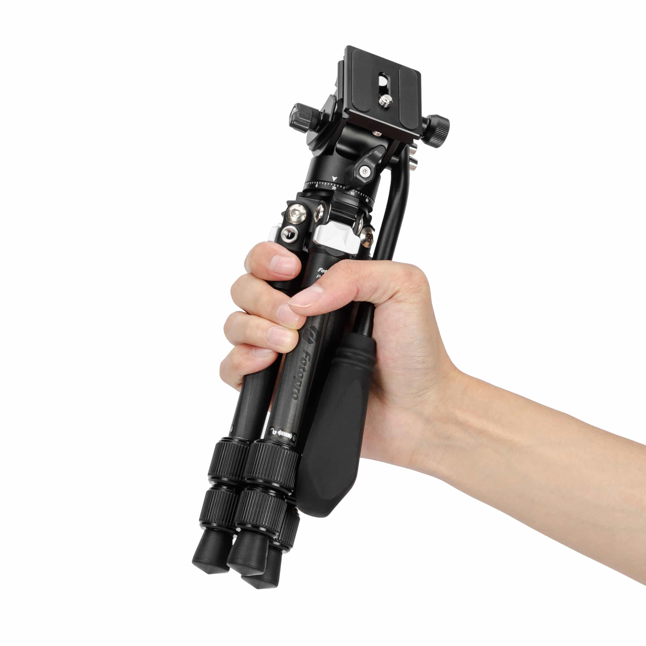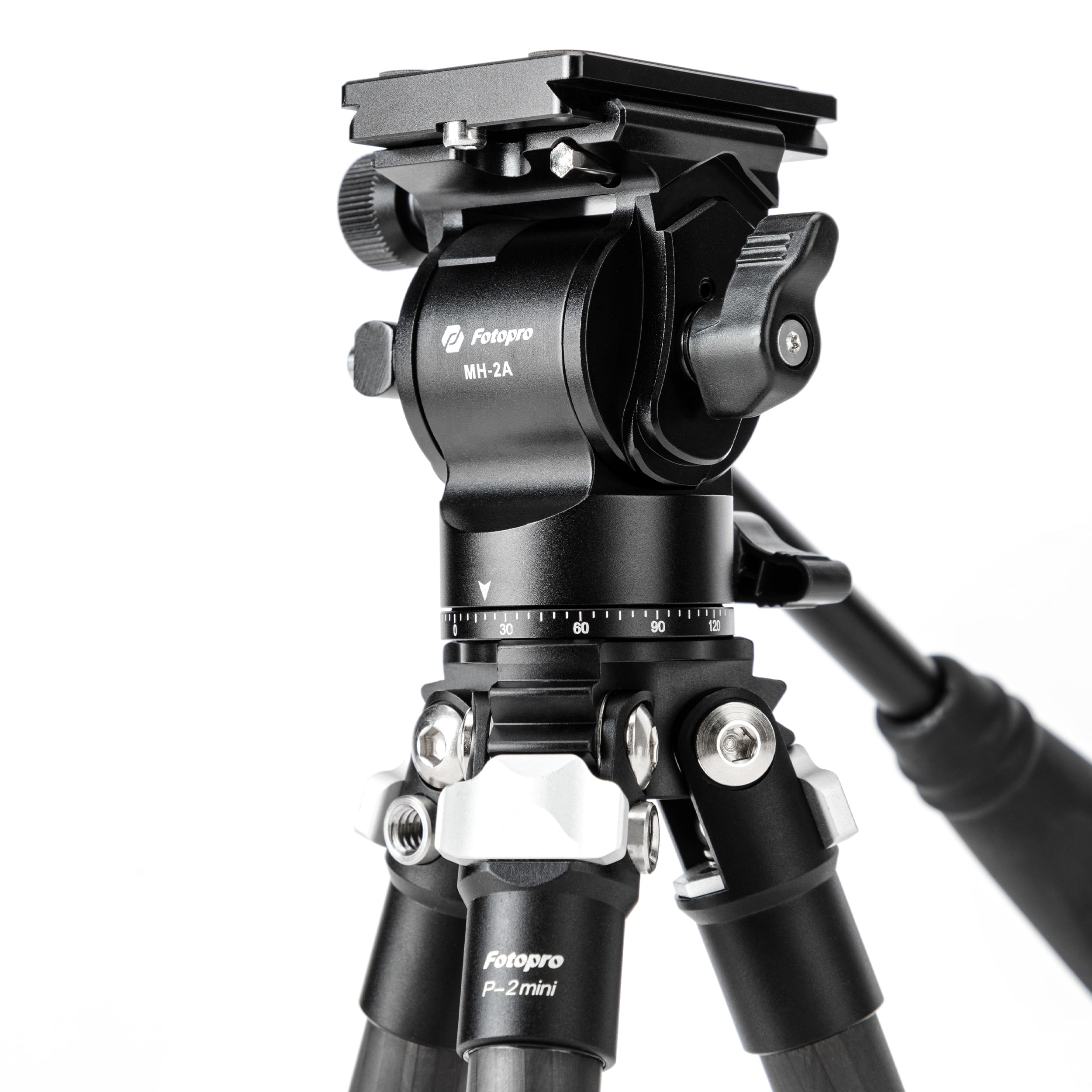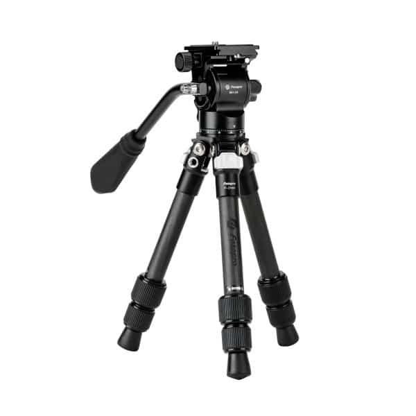 The P-2mini+MH-2A is a mini carbon video tripod. Weighing only 0.53kg (1.17lbs), this ultra-lightweight tripod features a hydraulic pan head for smooth 360° rotation and 145° tilt. Made with high-strength carbon fiber, it securely supports 70-200mm lenses. The quick-release plate and three expansion holes allow for versatile accessories like phones and microphones. Its compact size and user-friendly design make it perfect for travel and professional shooting on the go.