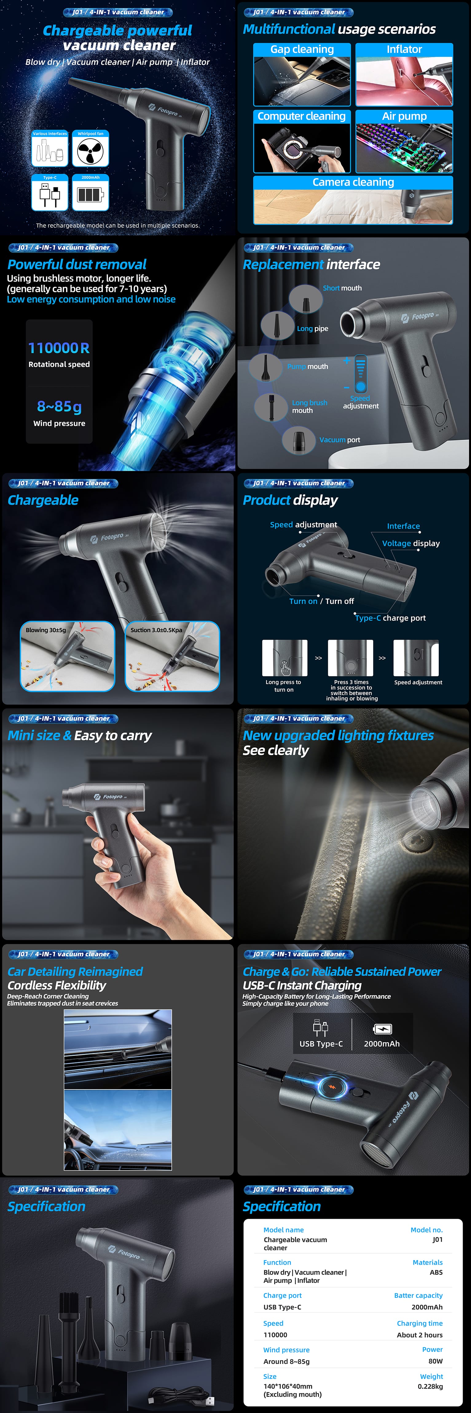 - The J01 Air Duster features two versions. The upgraded Gen-2 model includes a built-in LED light. Specifications for global market releases may vary by region to comply with local requirements.