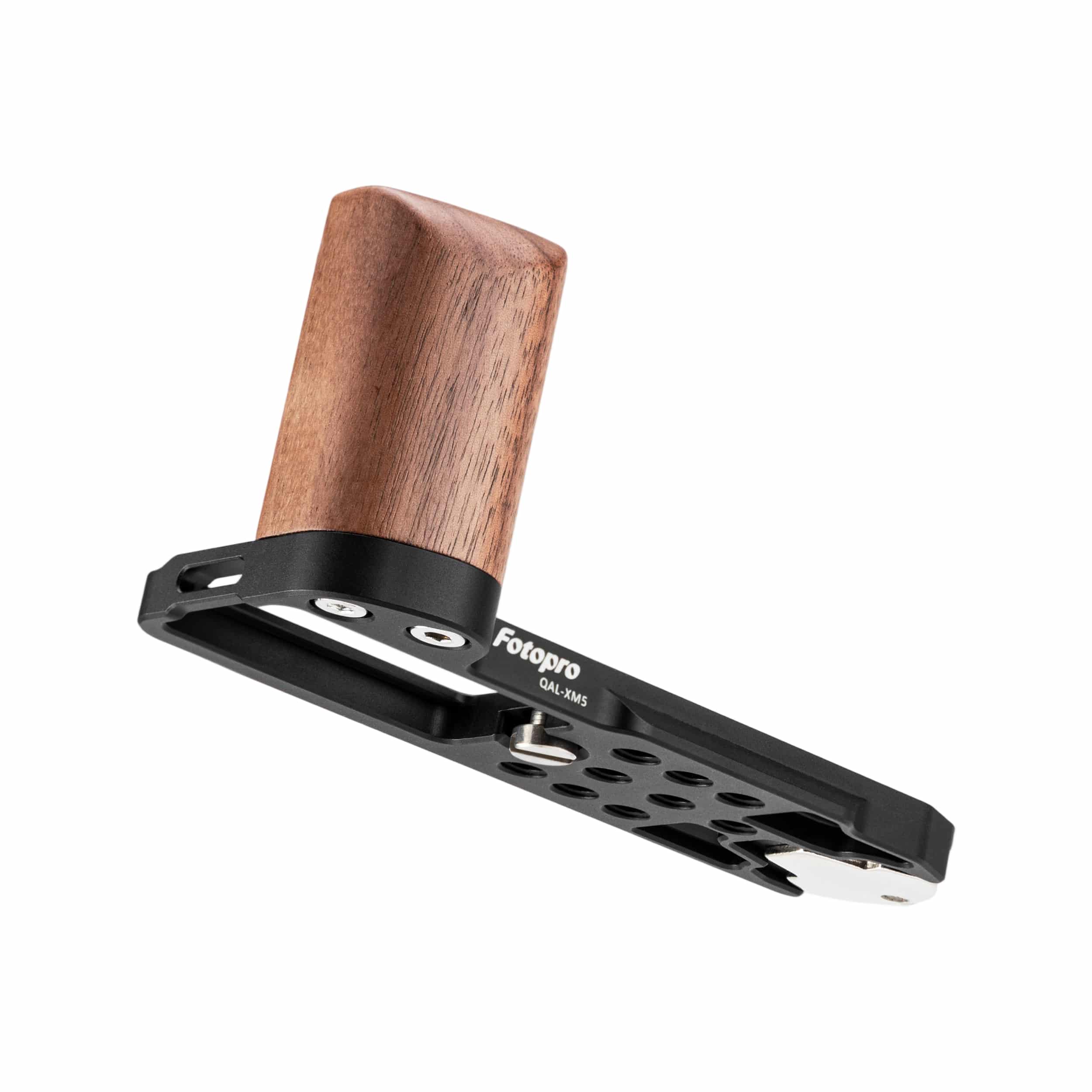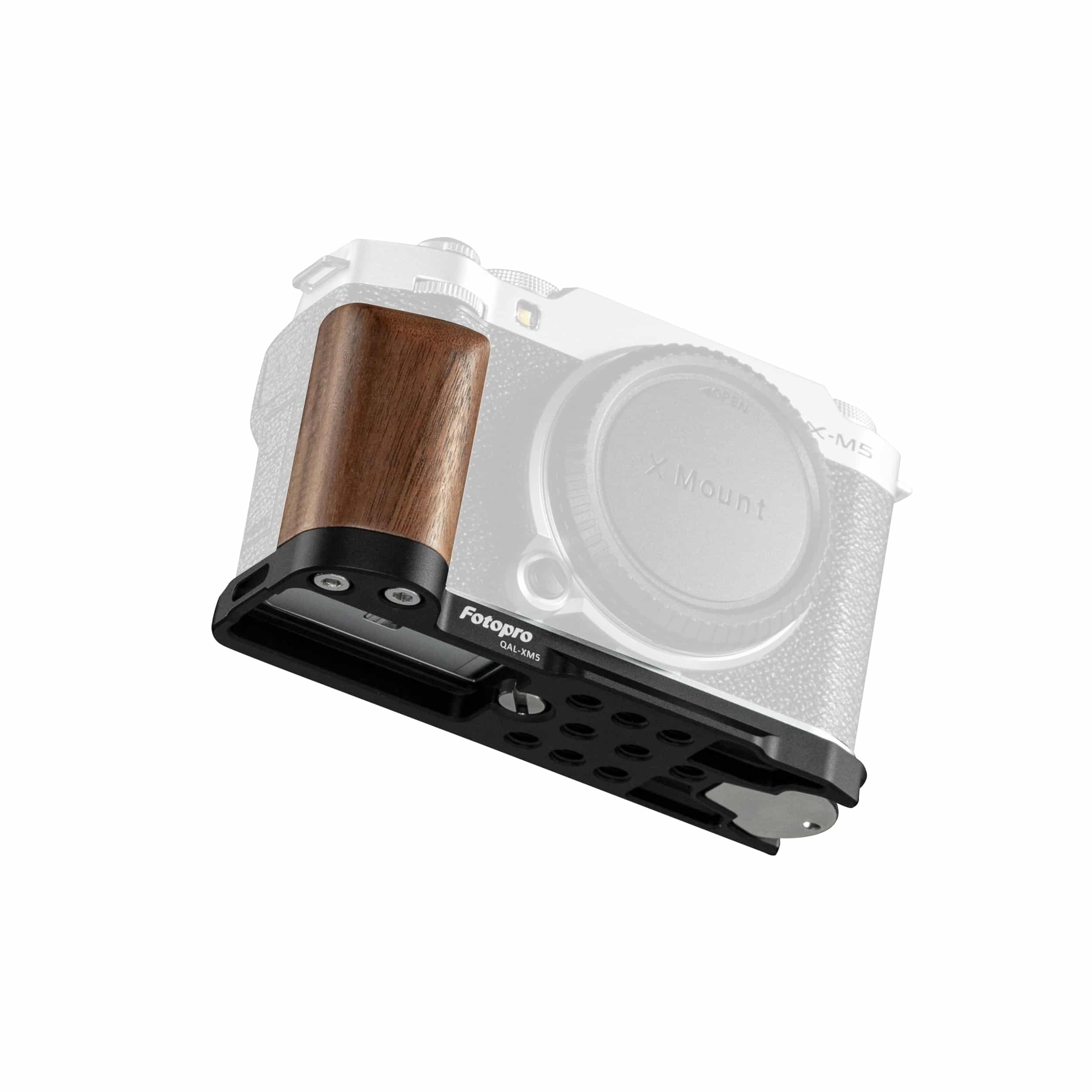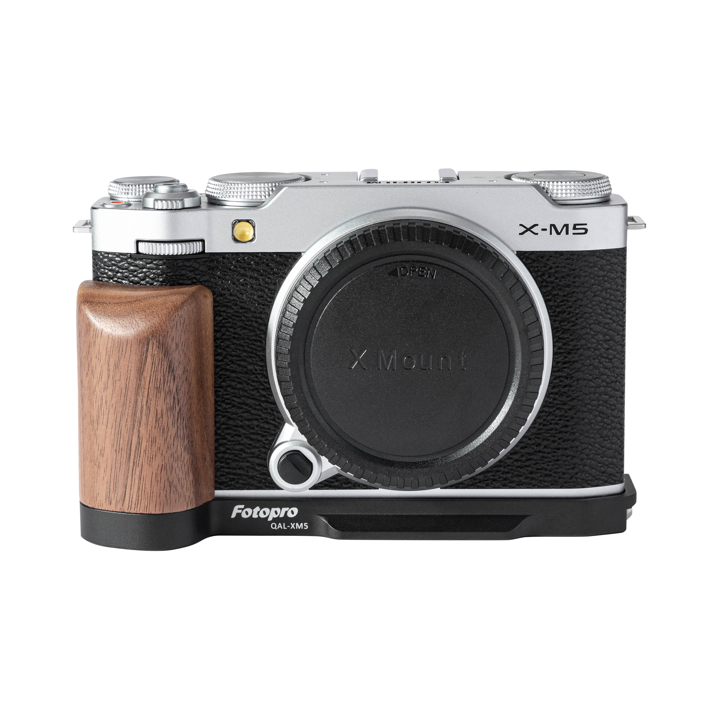 The QAL-XM5 L-Bracket: Crafted for the Fujifilm X-M5, it features a premium ebony wood handle for ergonomic grip and protection. Includes multiple 1/4″ expansion holes for tripods/accessories and a calibrated hole for precise panoramic alignment. Lightweight (0.0576kg) with a magnetic wrench and non-obstructive design.