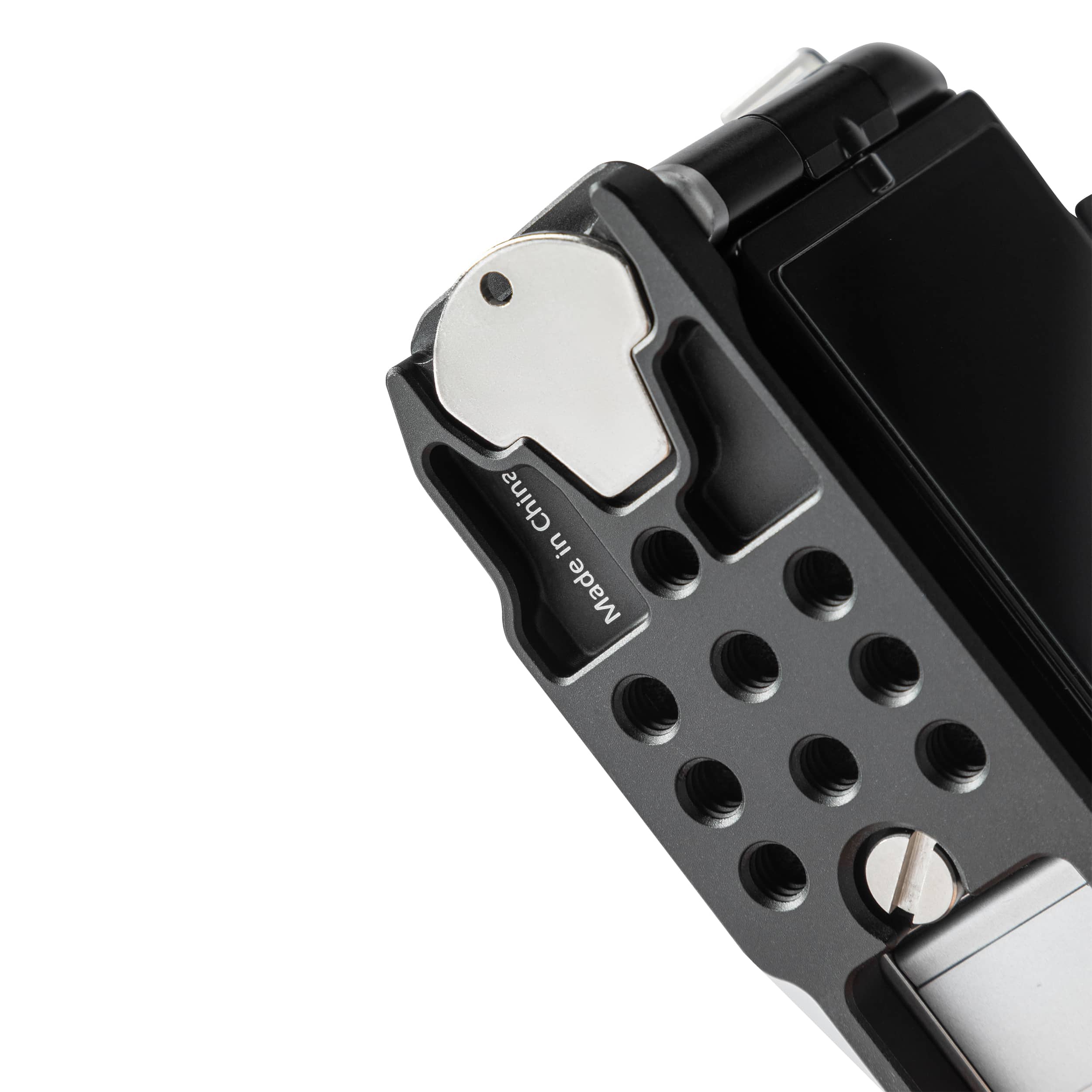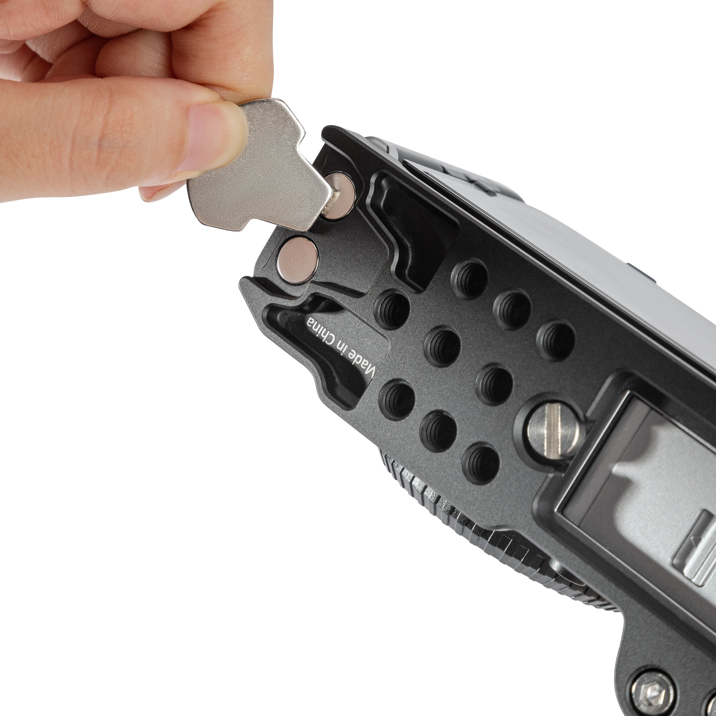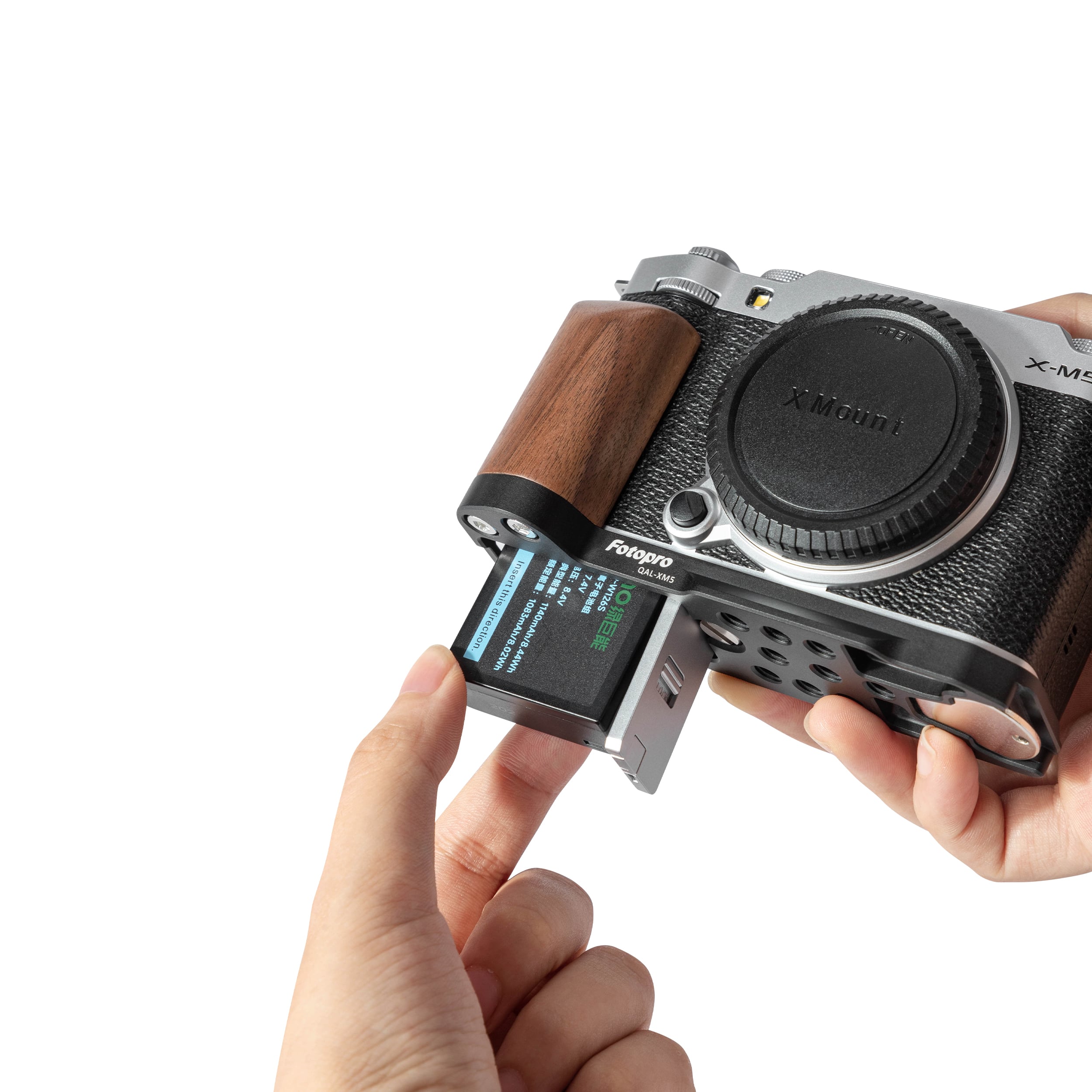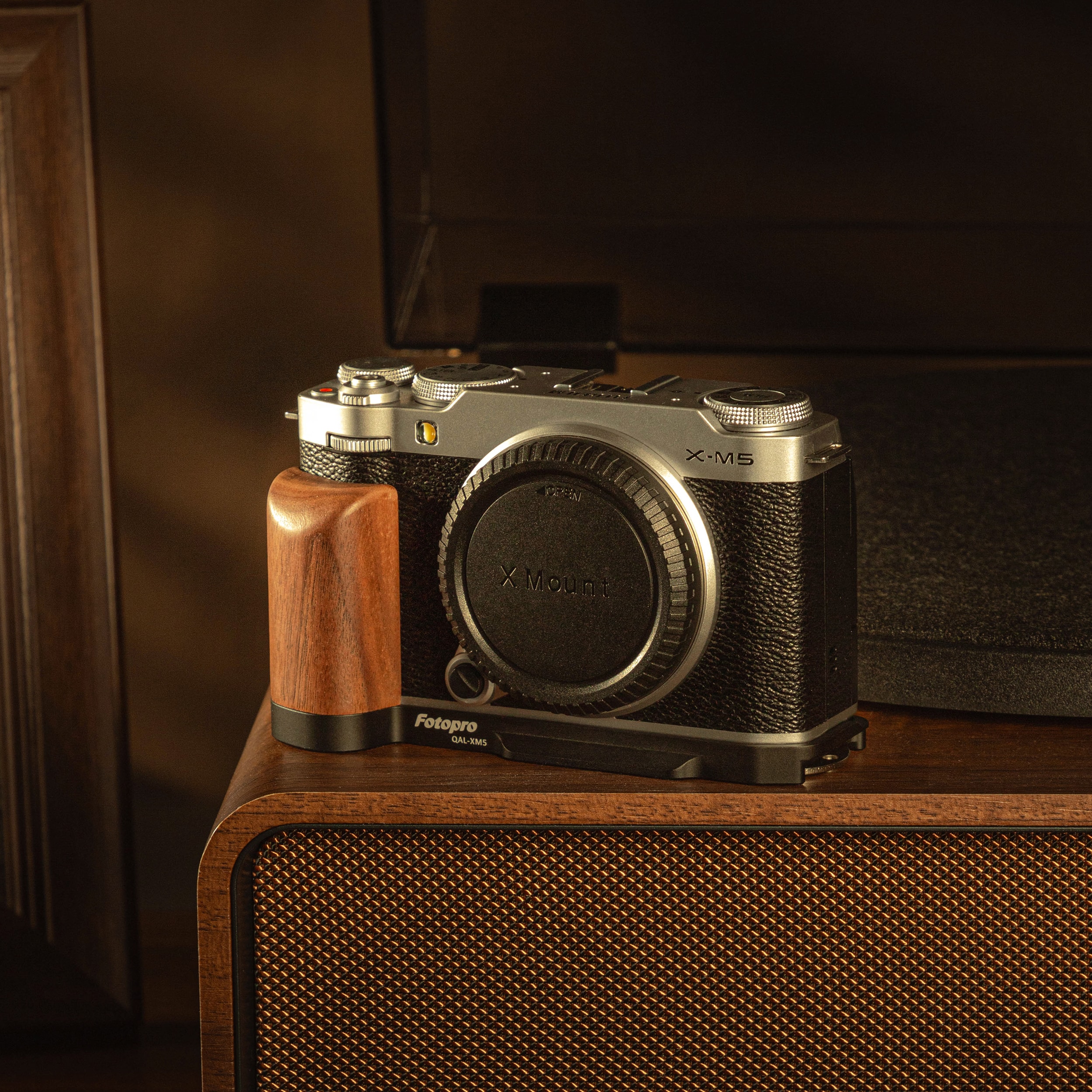 The QAL-XM5 L-Bracket: Crafted for the Fujifilm X-M5, it features a premium ebony wood handle for ergonomic grip and protection. Includes multiple 1/4″ expansion holes for tripods/accessories and a calibrated hole for precise panoramic alignment. Lightweight (0.0576kg) with a magnetic wrench and non-obstructive design.