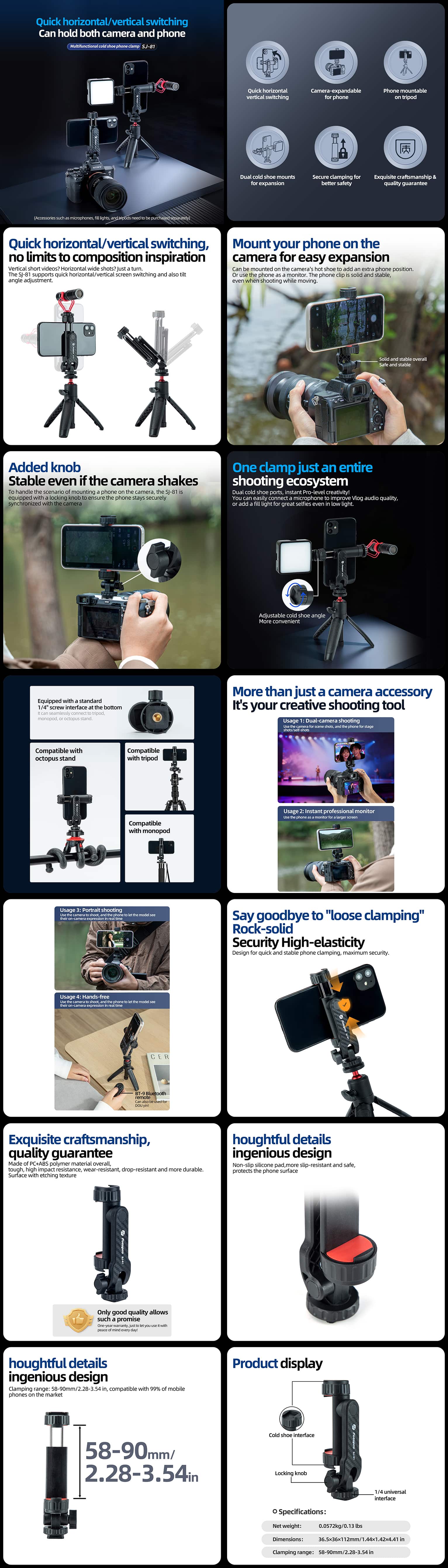 SJ-81 Cold Shoe Phone Clip – Quick Rotate Horizontal/Vertical Mount