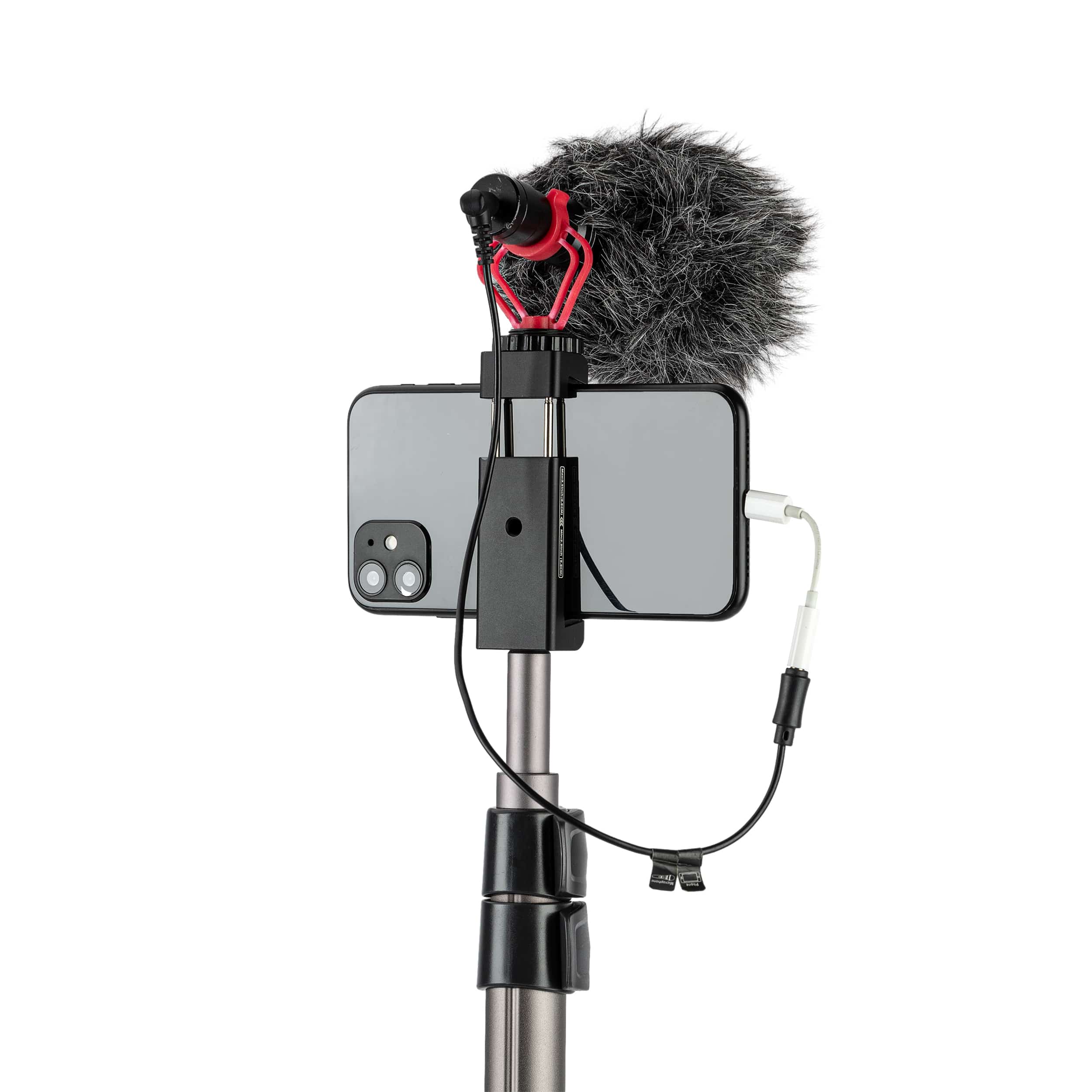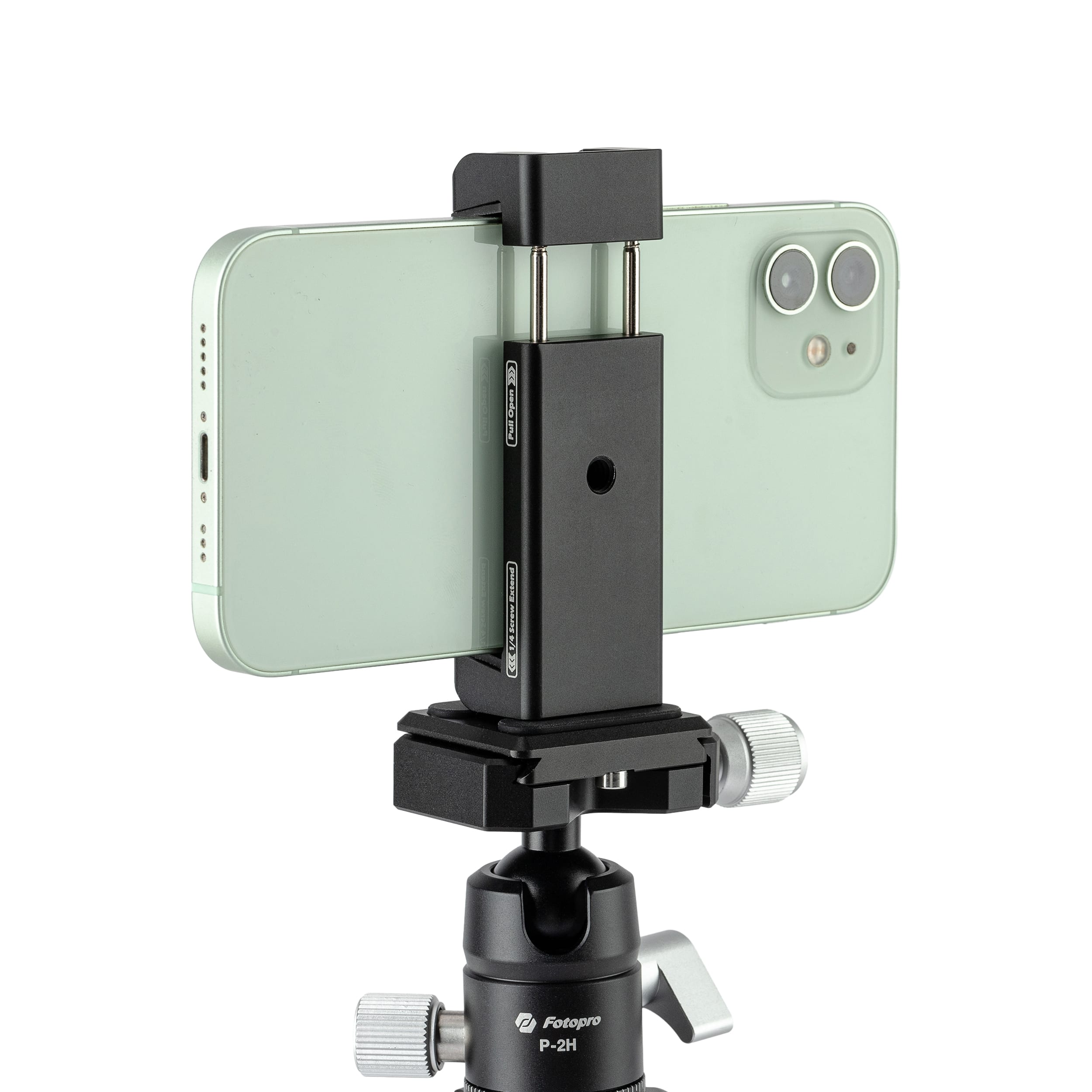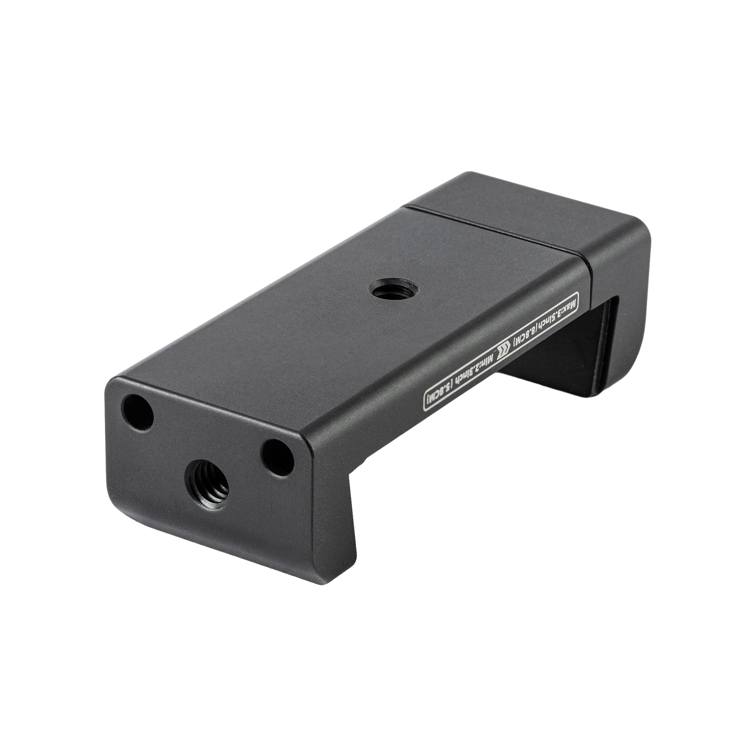 The Model SJ-98 is a metal phone clamp weighing 64.6 g (0.142 lbs), with compact dimensions of 30×24×77 mm (1.181×0.945×3.031 in). It features an adjustable clamp range of 58–88 mm (2.283–3.465 in), compatible with most smartphones. Integrated with 1 top cold shoe mount for accessories (e.g., lights/mics) and a standard 1/4″-20 screw hole at the base, it seamlessly attaches to tripods, monopods, and flexible arms (magic arms) for versatile mounting solutions.