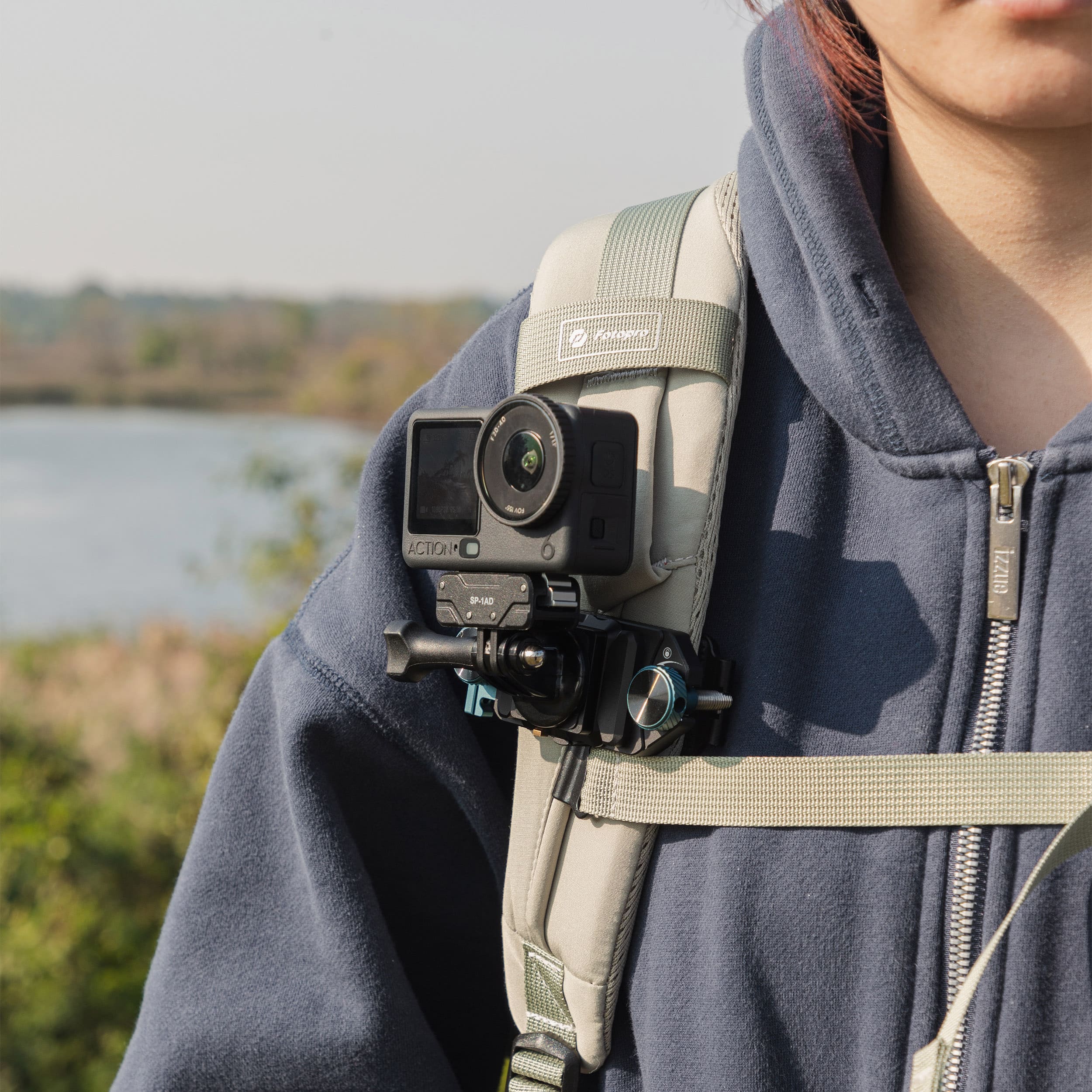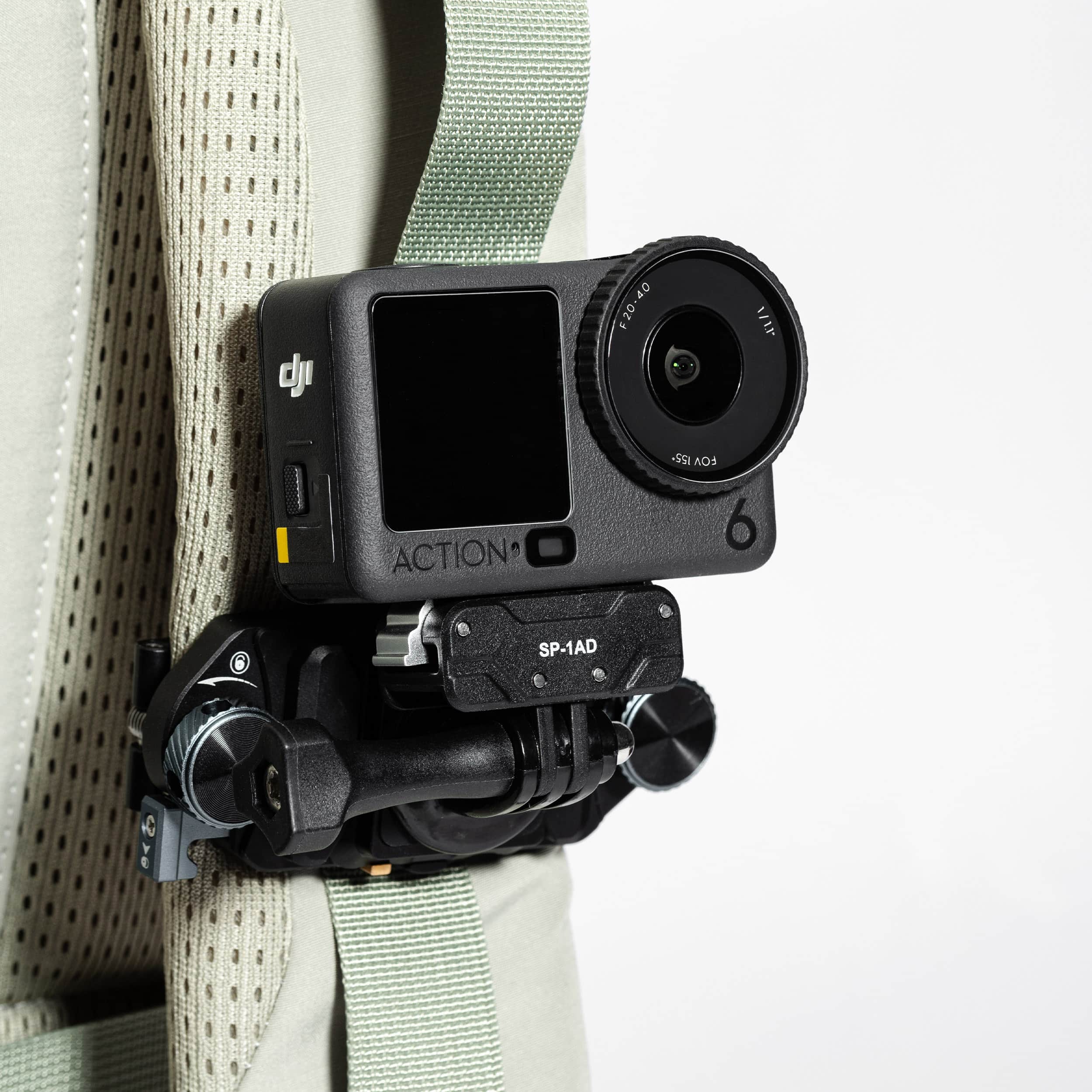 SP-1AD magnetic mount with 1/4″ screw & two-jaw chuck. Strong magnets + metal buckle for rock-steady locking. Anti-slip silicone pad, instant 0.5s attachment, ultra-light 0.019g. Compatible with Action 6/Nano and more – unlock fast switching for cycling, hiking, vlogging.