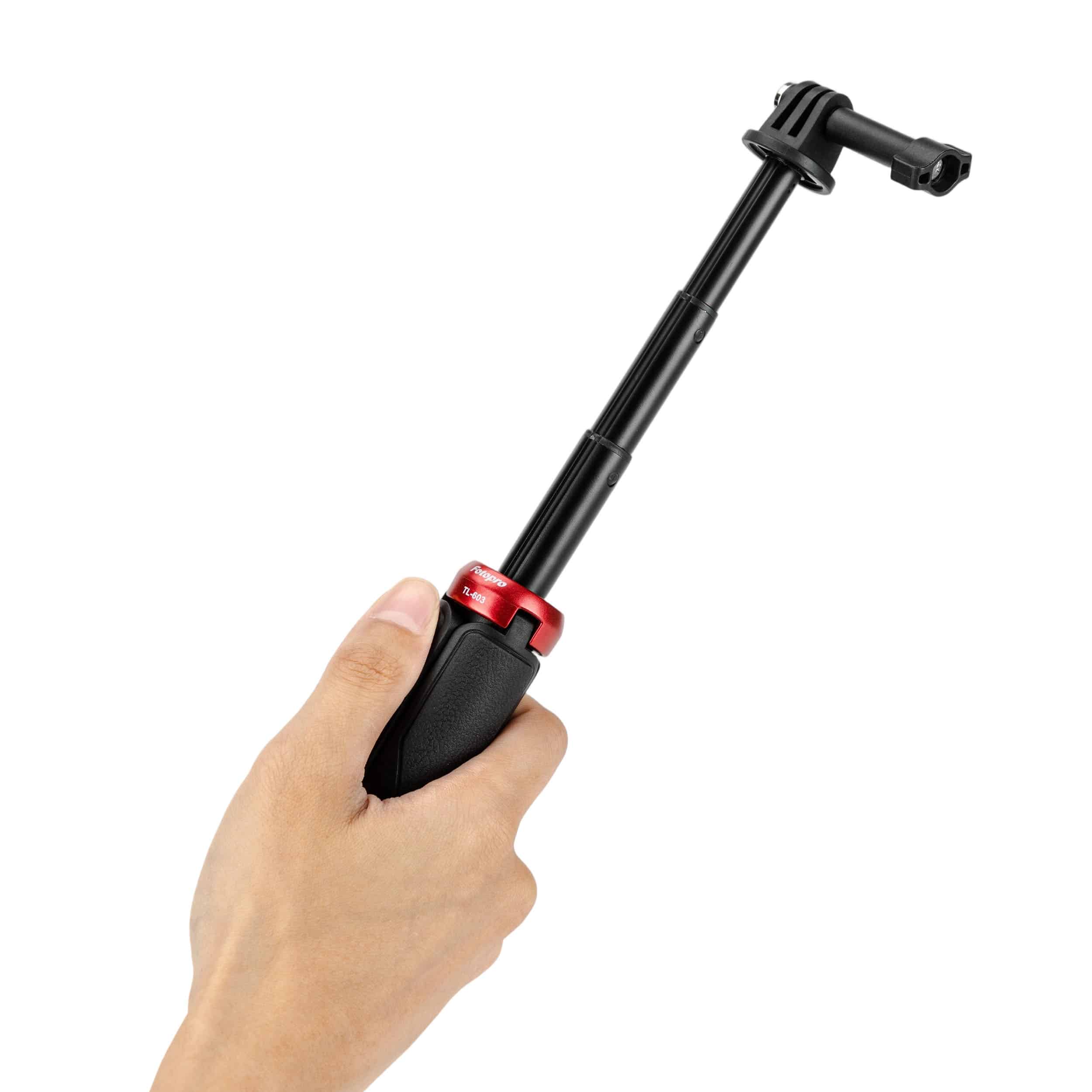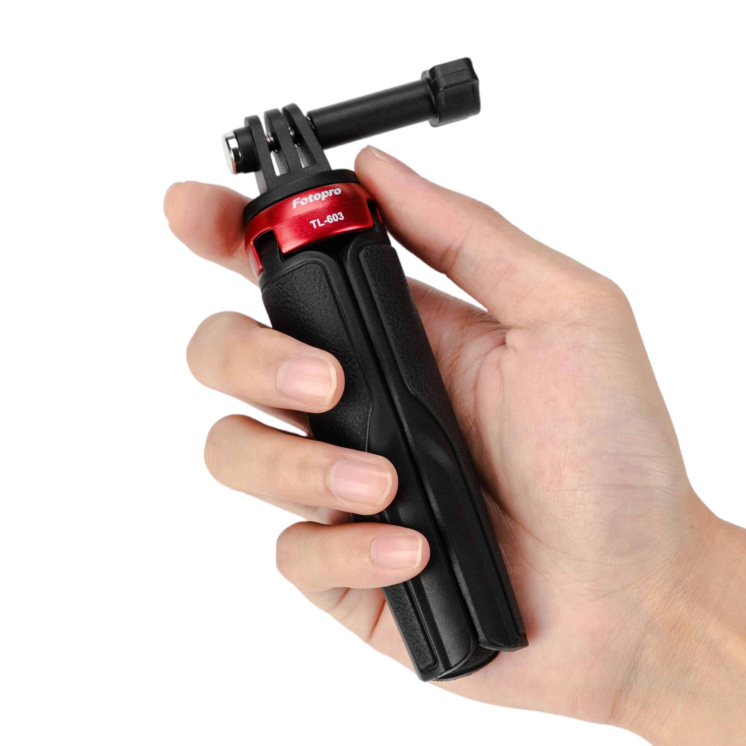 The TL-603 is a compact and versatile mini table tripod and selfie stick, perfectly sized for action cameras. It folds down to a portable 14cm (5.51in) and supports up to 1.5kg (3.31lbs). The skin-friendly handle ensures a comfortable grip for stable shots, time-lapse videos, and vlogging. Its universal interface offers great flexibility for creative filming.